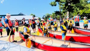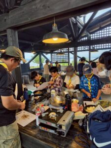 湖でのプログラムを思いっきり楽しんだら、次は野外料理。